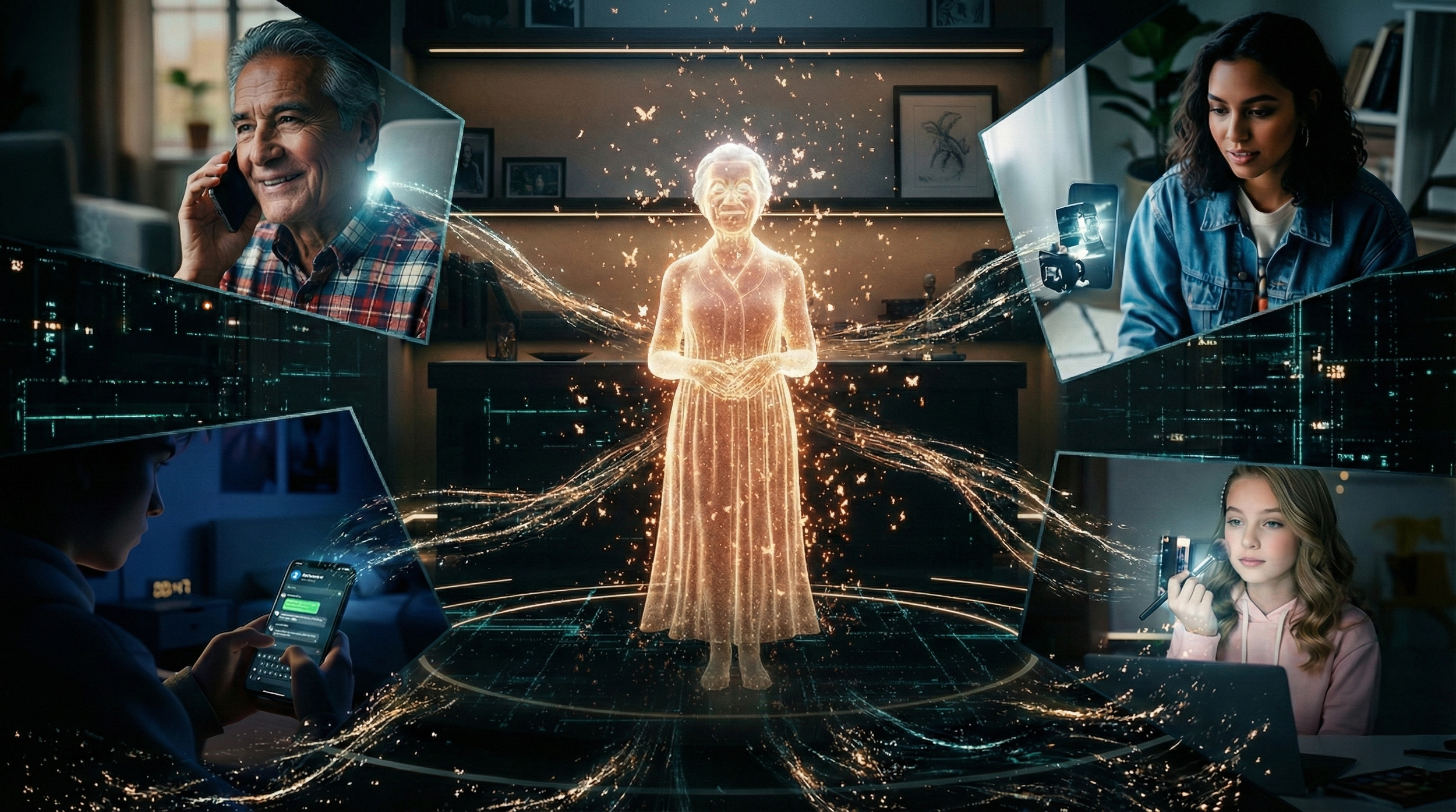 Child using a laptop with a colorful educational game or app on the screen, involving animated characters and interactive lessons, on a white desk with scattered colored pencils.